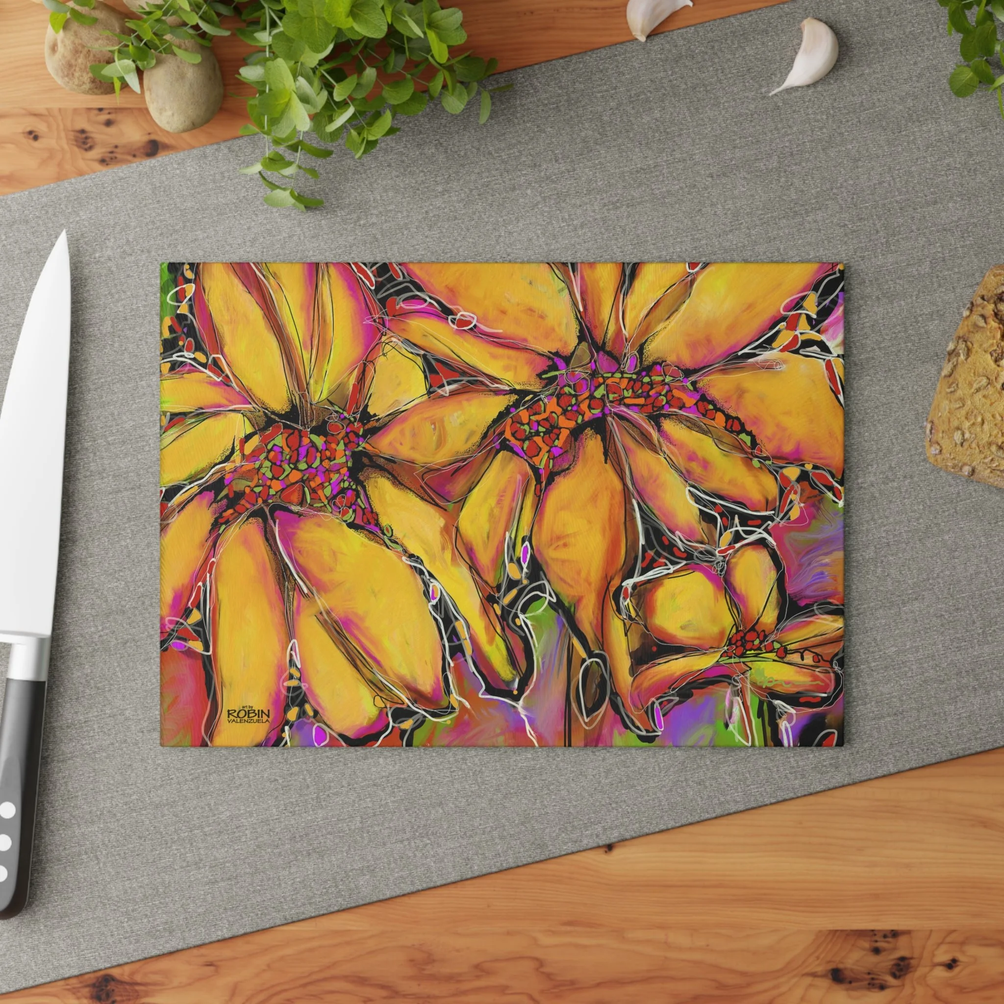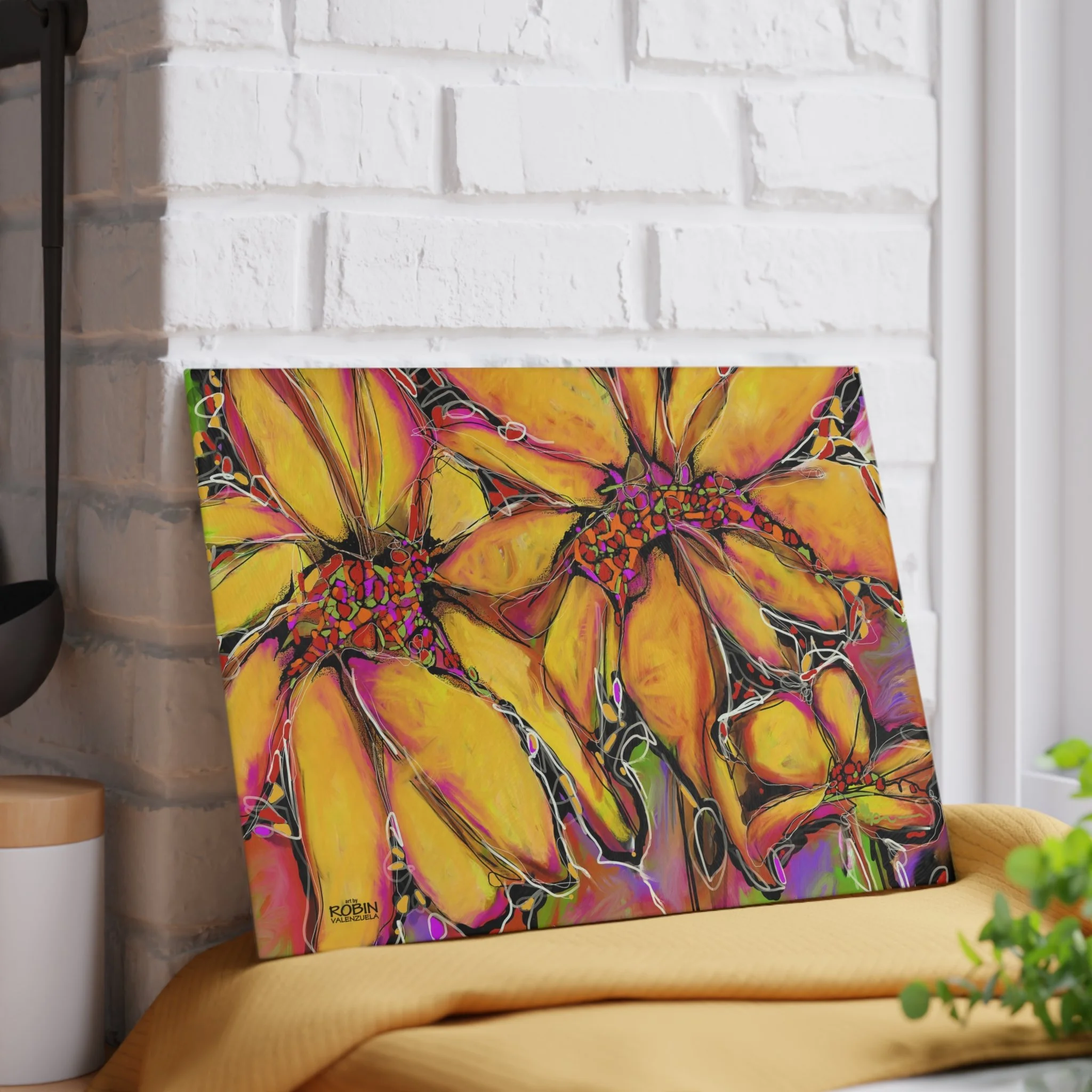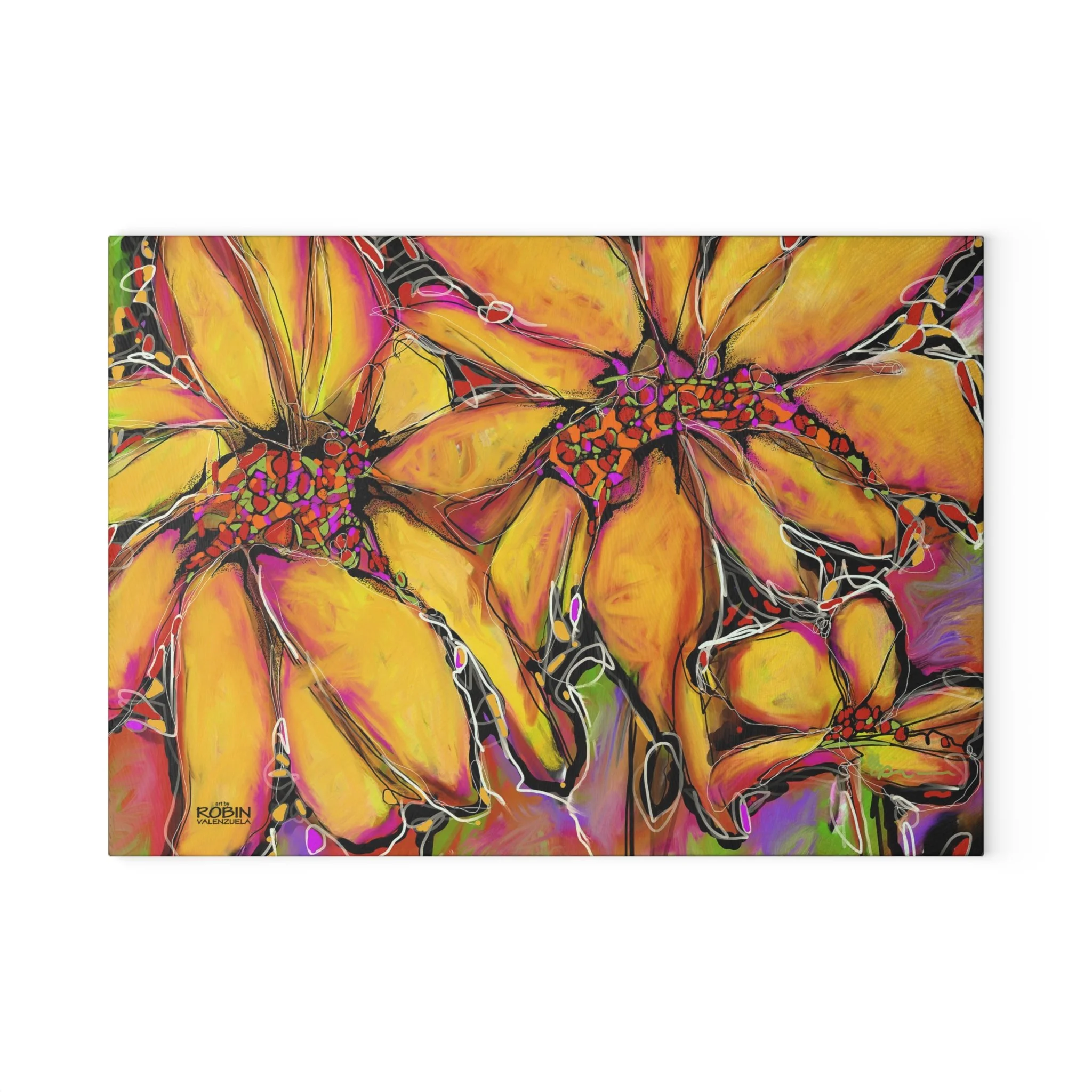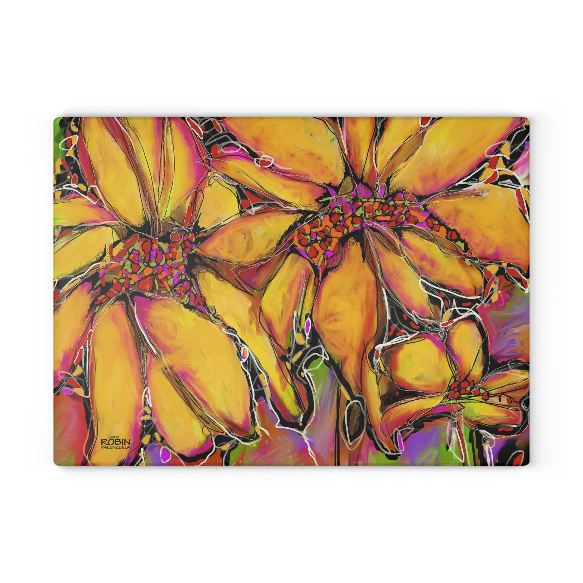 Robin V’s most popular images, from original art or digital art, are available on home and lifestyle accessories.Free shipping on all merchandise! Categories: All Magic Sunflower Design Dahlias Design Magic Sunflower Design Sunflower Journal $17.95 Add To Cart Added! Sunflower Weekender Bag $48.50 Add To Cart Added! Abstract Sunflower Desk Mat with Colorful Blooms, Office Decor, Eco-Friendly Mouse Pad, Home Office Accessory, Flower Art from $26.50 Select Size 12" × 18" 12" × 22" 16" × 32" Add To Cart Added! Abstract Sunflower Cotton Canvas Tote Bag $24.50 View Options Vibrant Sunflower Glass Cutting Board, Kitchen Decor, Gift for Chefs, Unique Housewarming Gift, Artful Cooking Accessory from $35.95 View Options Vibrant Sunflower Floral Pillow, Colorful Throw Cushion, Home Decor, Spring Decor from $43.50 Select Size 14" × 14" 16" × 16" Add To Cart Added! Vibrant Sunflower Floral Tote Bag - Colorful Garden Art for Everyday Use from $26.50 View Options Colorful Sunflower Golf Towels, Floral Golf Accessories, Lightweight Golf Towel, Gifts for Golfers, Unique Golf Gear, Sports Towels $24.50 Add To Cart Added! Bright Abstract Sunflower Canvas Wall Art square, Botanical Decor, Colorful Flower Painting, Home Decor, Gift for Nature Lovers $26.50 Add To Cart Added! Bright Abstract Sunflower Floral Canvas Print, Colorful Art Decor, Perfect for Home or Office, Gift for Nature Lovers, Wall Art for any Occasion from $32.50 View Options Vibrant Yellow Abstract Sunflower iPhone Cases, Tough Magnetic Phone Cover, Colorful Protection, Bright Phone Accessories $33.50 View Options Sunflower Digital Design Ceramic Mug 15oz $19.50 Add To Cart Added! Sunflower Digital Design Ceramic Mug 11oz $15.95 Add To Cart Added! Sunflower Digital Design Coffee Mug - Vibrant Flower Design for Home, Garden Lovers, Gifts, Coffee Lovers, Mother's Day, Birthdays from $17.95 View Options Sunflower Accessory Pouch w T-bottom from $17.50 View Options