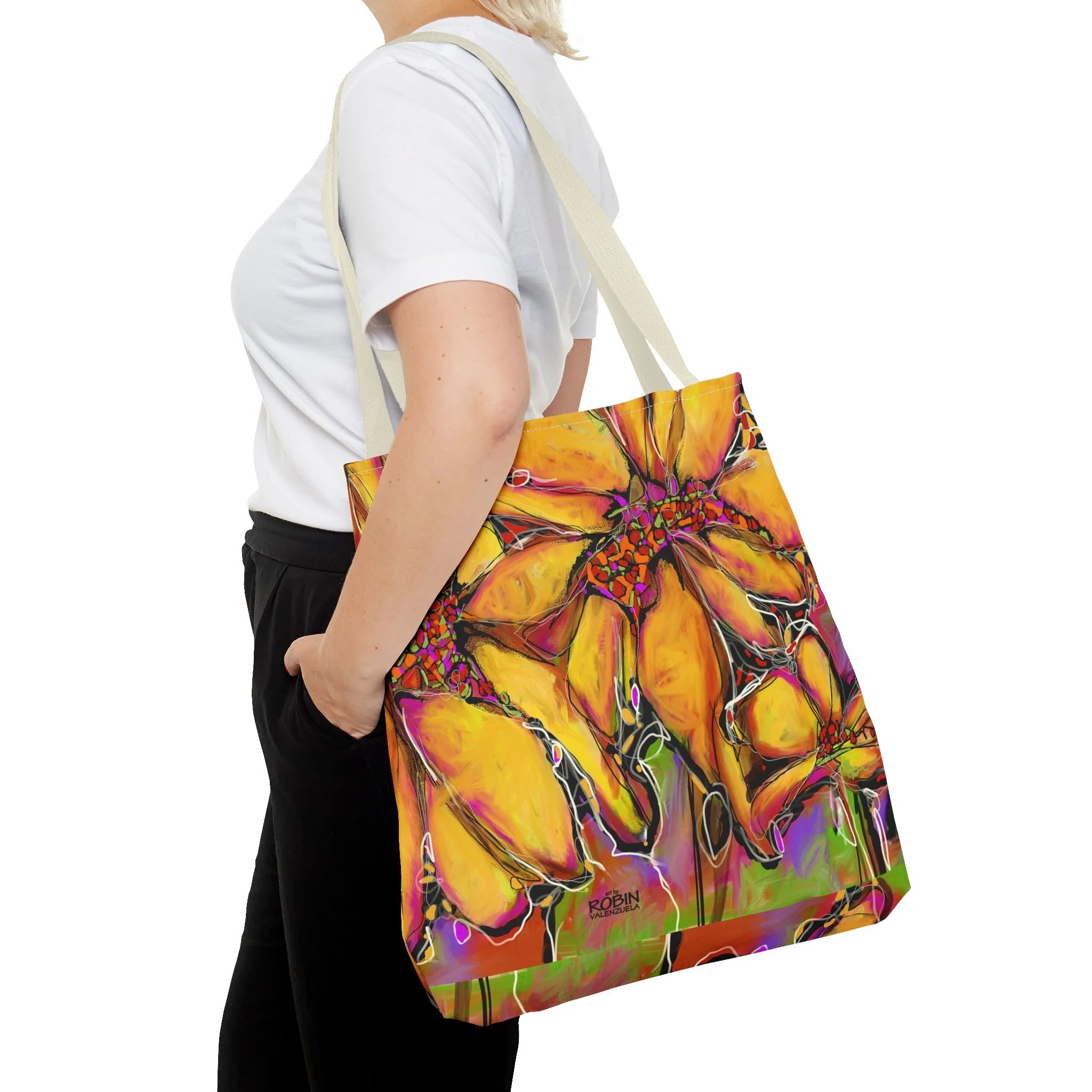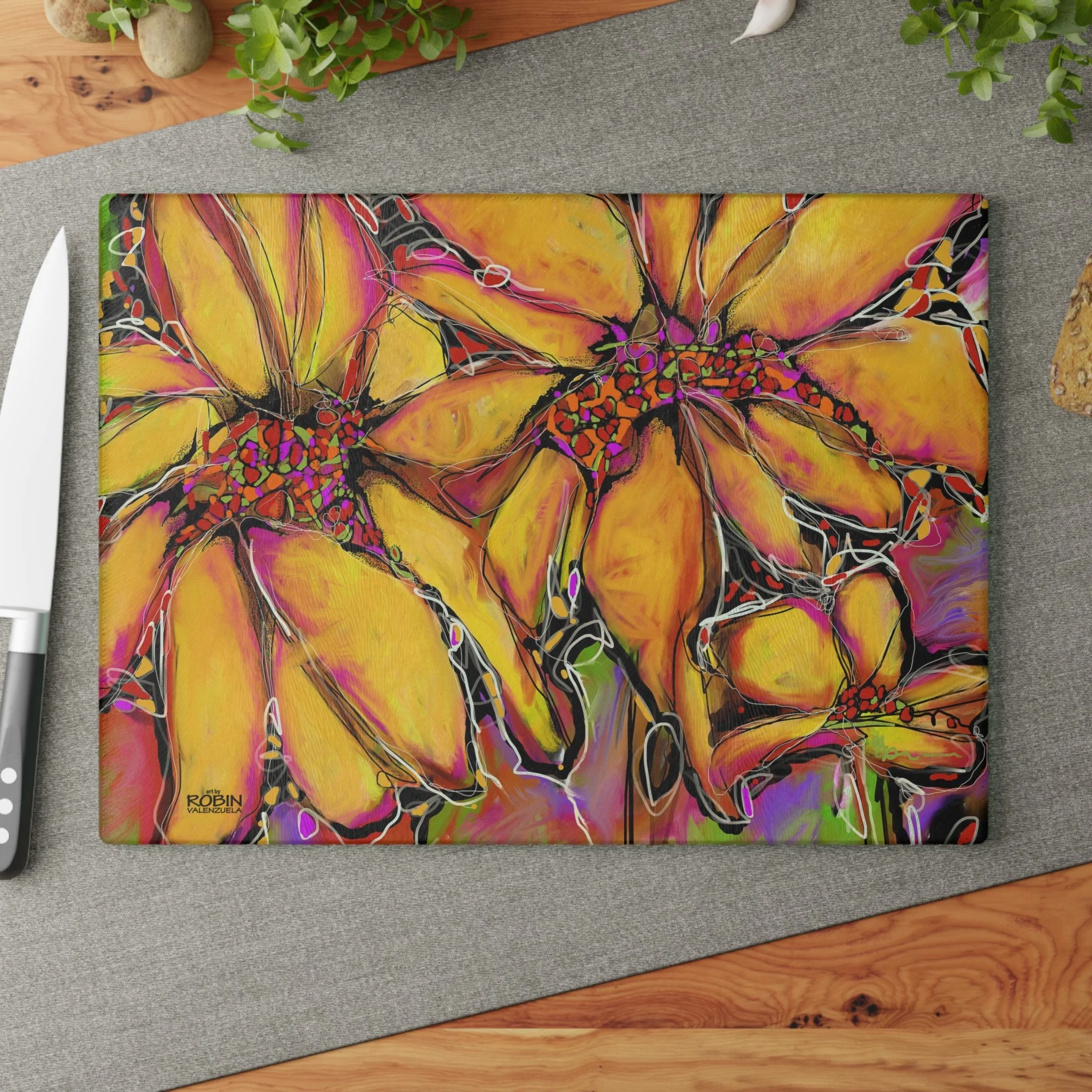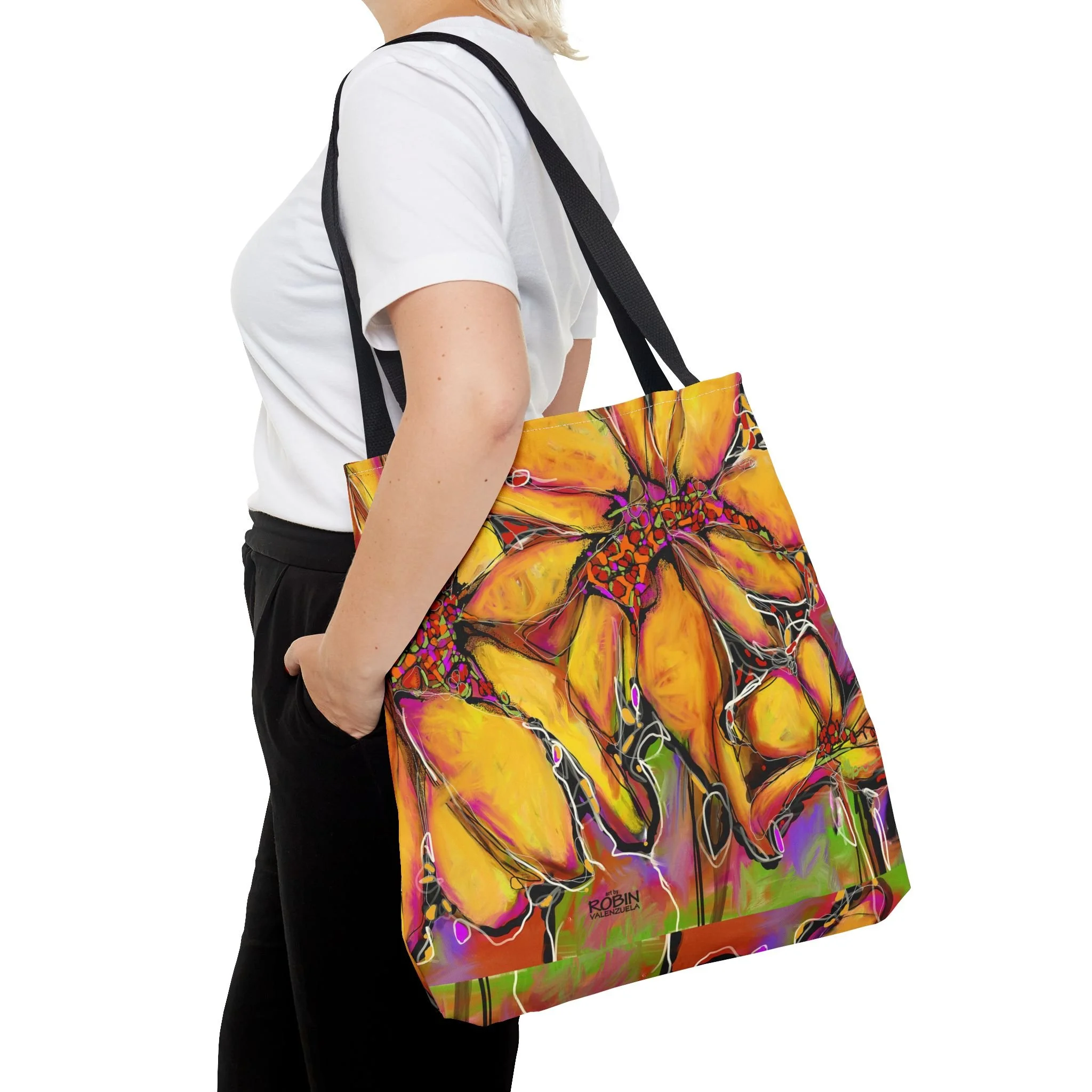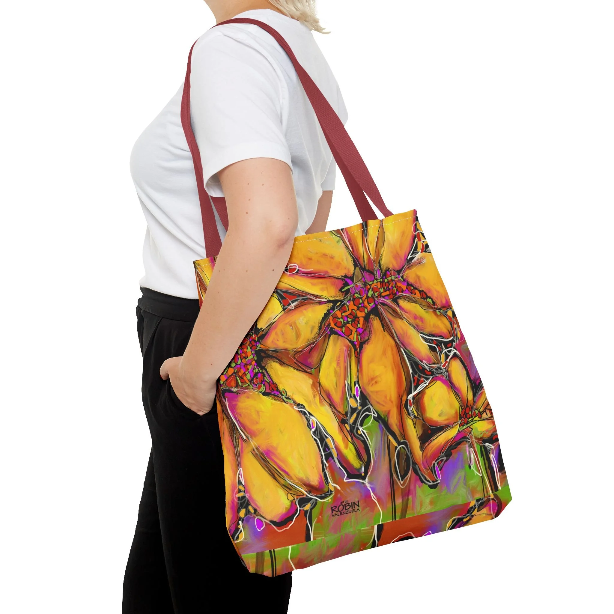Robin V’s most popular images, from original art or digital art, are available on home and lifestyle accessories.Free shipping on all merchandise! Categories: All Magic Sunflower Design Dahlias Design Magic Sunflower Design Sunflower Journal $17.95 Add To Cart Added! Sunflower Weekender Bag $48.50 Add To Cart Added! Abstract Sunflower Desk Mat with Colorful Blooms, Office Decor, Eco-Friendly Mouse Pad, Home Office Accessory, Flower Art from $26.50 Select Size 12" × 18" 12" × 22" 16" × 32" Add To Cart Added! Abstract Sunflower Cotton Canvas Tote Bag $24.50 View Options Vibrant Sunflower Glass Cutting Board, Kitchen Decor, Gift for Chefs, Unique Housewarming Gift, Artful Cooking Accessory from $35.95 View Options Vibrant Sunflower Floral Pillow, Colorful Throw Cushion, Home Decor, Spring Decor from $43.50 Select Size 14" × 14" 16" × 16" Add To Cart Added! Vibrant Sunflower Floral Tote Bag - Colorful Garden Art for Everyday Use from $26.50 View Options Colorful Sunflower Golf Towels, Floral Golf Accessories, Lightweight Golf Towel, Gifts for Golfers, Unique Golf Gear, Sports Towels $24.50 Add To Cart Added! Bright Abstract Sunflower Canvas Wall Art square, Botanical Decor, Colorful Flower Painting, Home Decor, Gift for Nature Lovers $26.50 Add To Cart Added! Bright Abstract Sunflower Floral Canvas Print, Colorful Art Decor, Perfect for Home or Office, Gift for Nature Lovers, Wall Art for any Occasion from $32.50 View Options Vibrant Yellow Abstract Sunflower iPhone Cases, Tough Magnetic Phone Cover, Colorful Protection, Bright Phone Accessories $33.50 View Options Sunflower Digital Design Ceramic Mug 15oz $19.50 Add To Cart Added! Sunflower Digital Design Ceramic Mug 11oz $15.95 Add To Cart Added! Sunflower Digital Design Coffee Mug - Vibrant Flower Design for Home, Garden Lovers, Gifts, Coffee Lovers, Mother's Day, Birthdays from $17.95 View Options Sunflower Accessory Pouch w T-bottom from $17.50 View Options