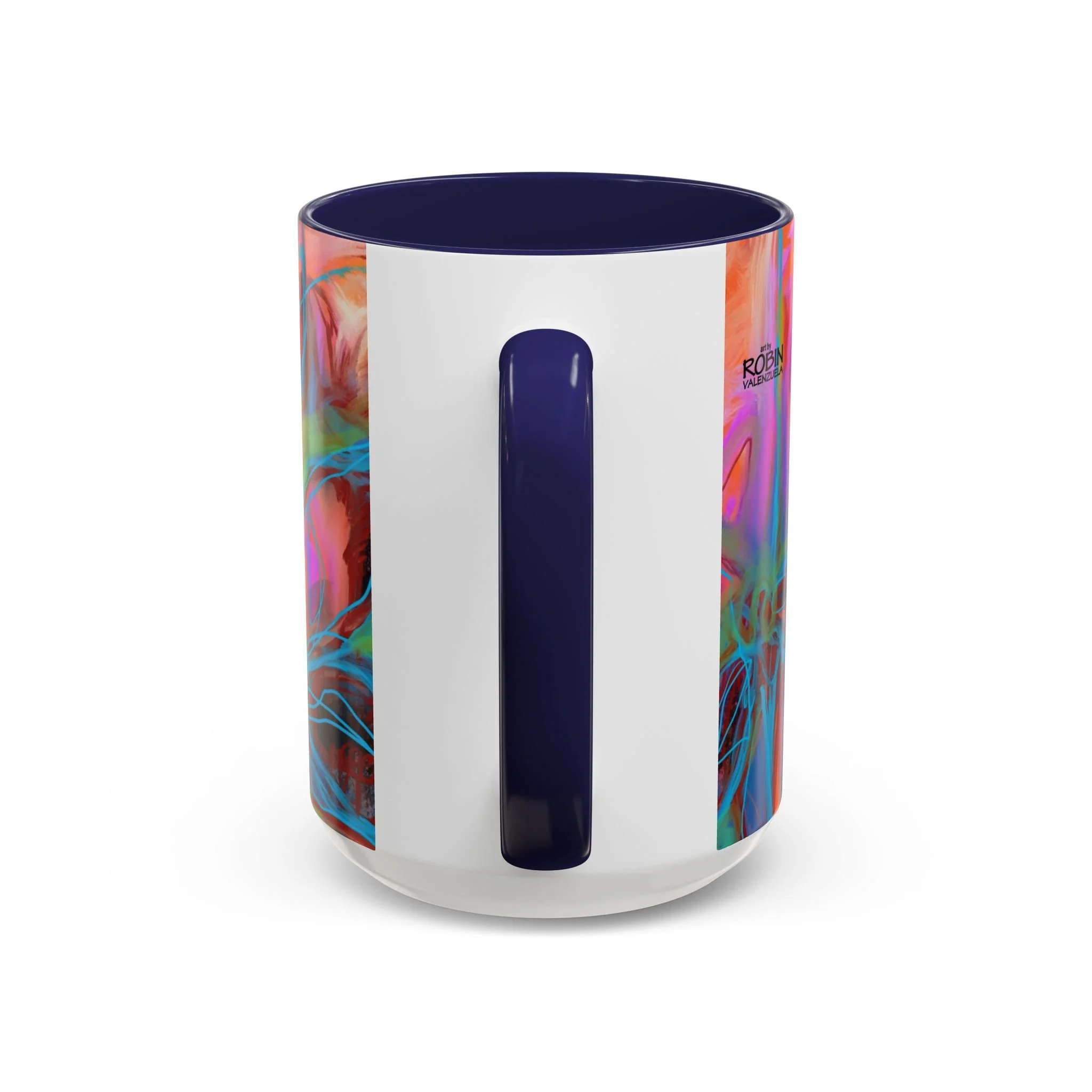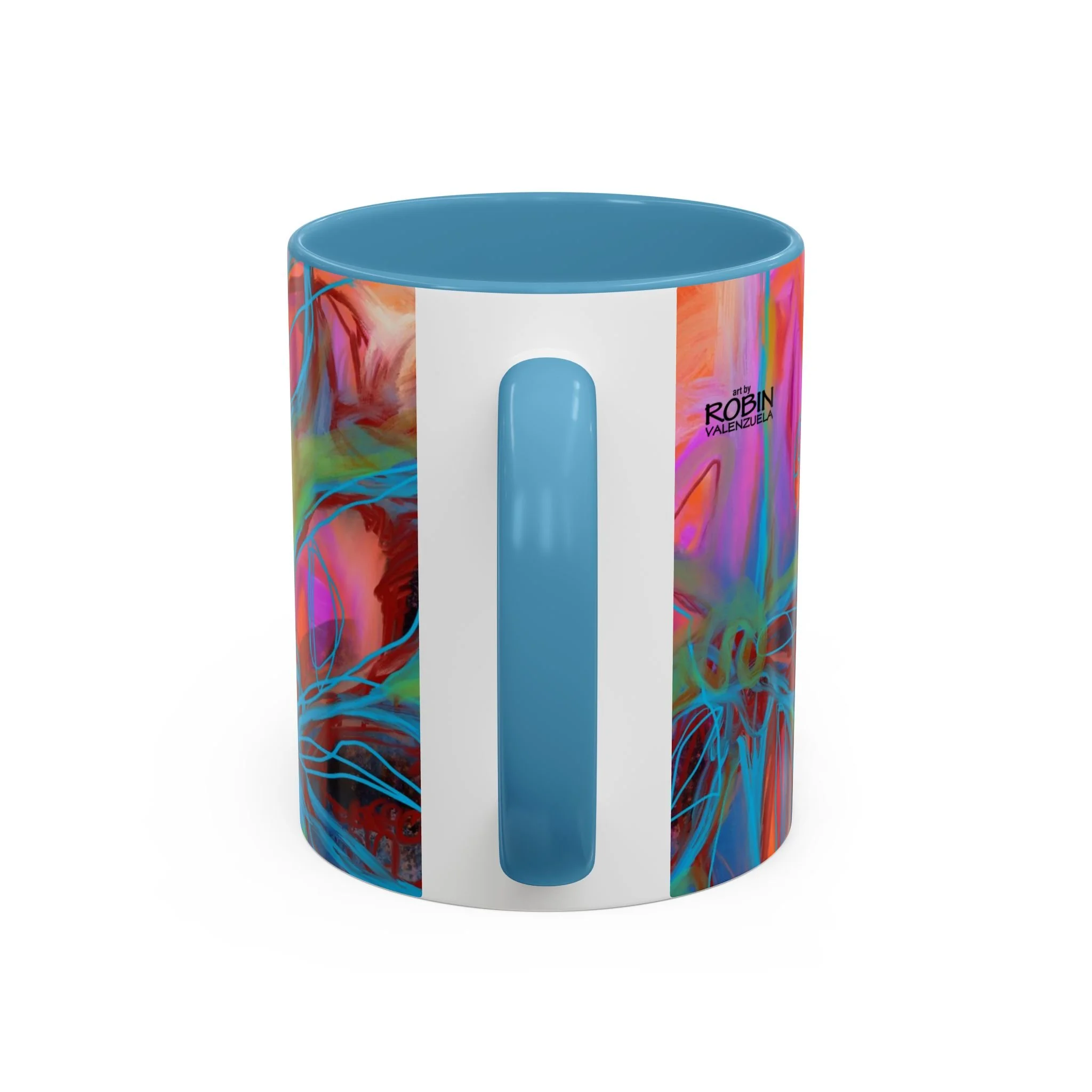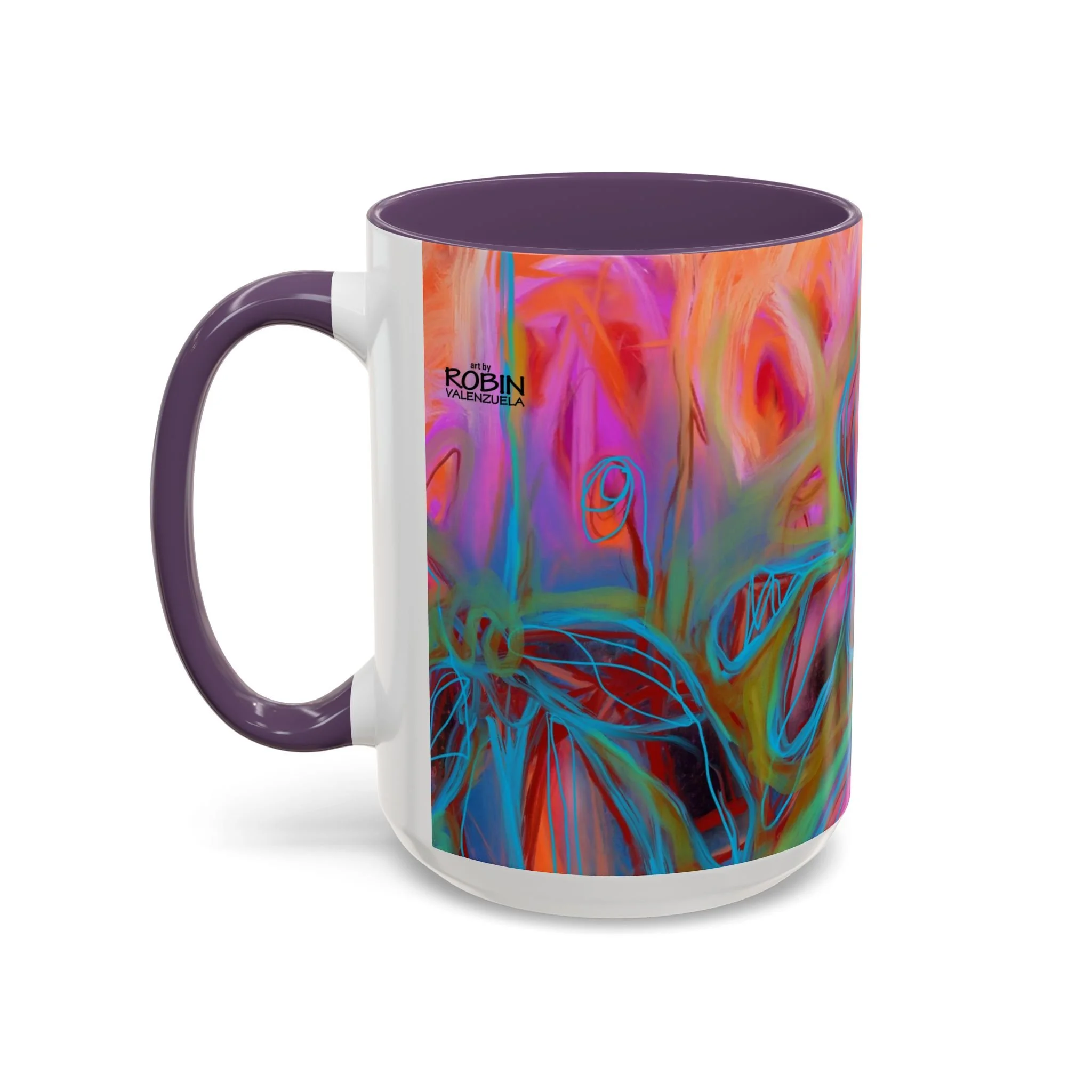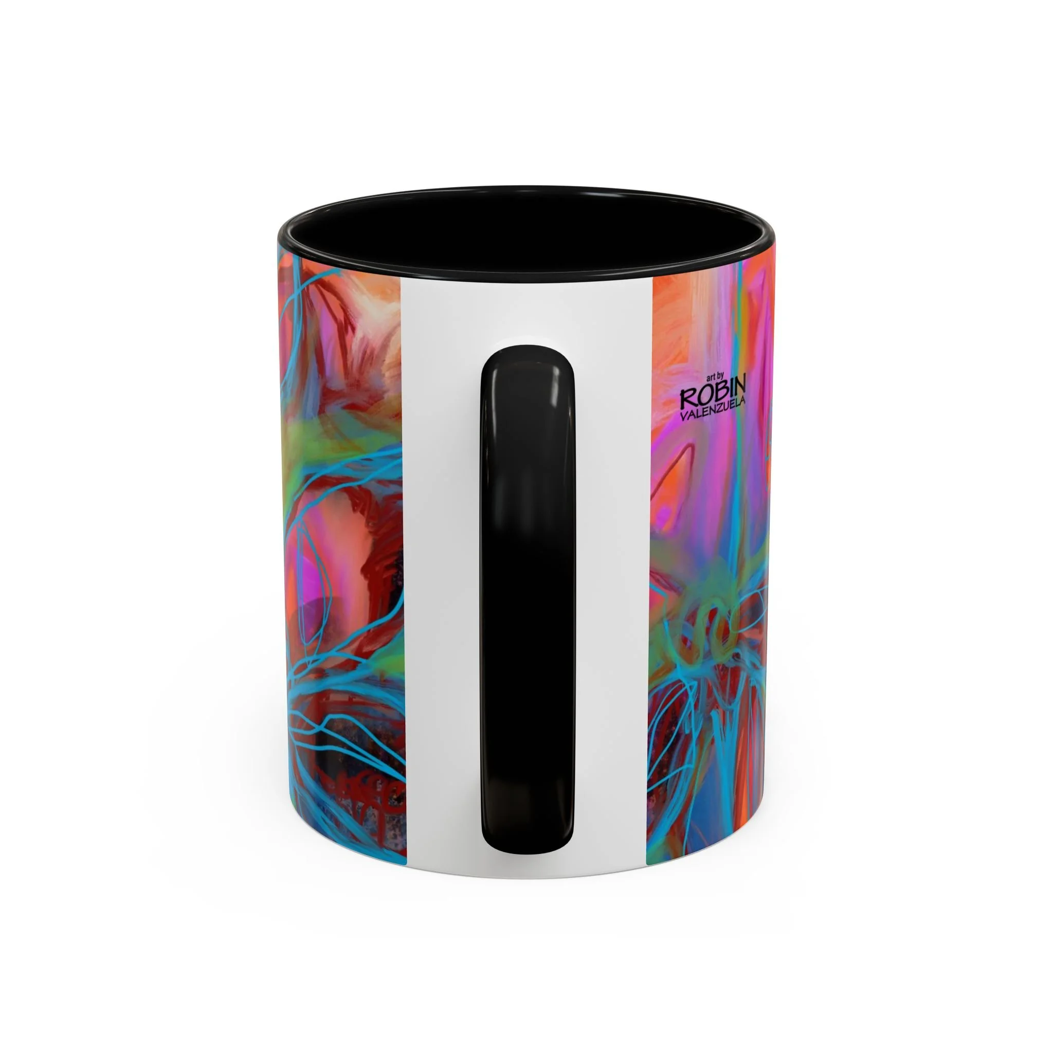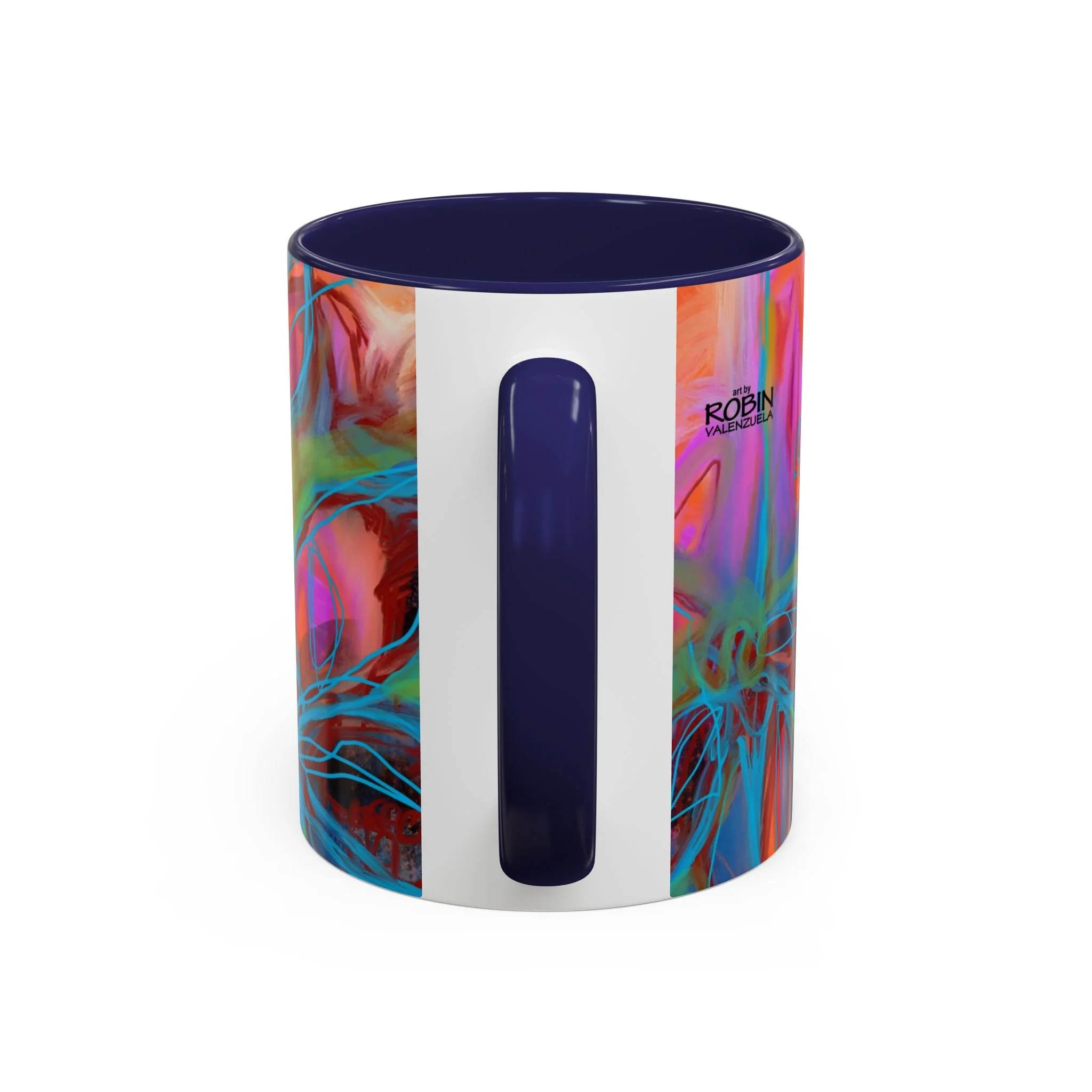 Bright, hand-drawn color dances wrap this ceramic mug like a small, warm sunrise. Swirls of magenta, teal, coral and gold create an energetic, painterly pattern that feels playful and alive. Hold it by the glossy C-handle and feel the contrast between the colored interior and the white exterior — a little moment of art for slow mornings, studio breaks, or late-night creative pulls. It’s sturdy enough for daily use, safe in the microwave and dishwasher, and vivid enough to keep the colors popping through your routine. This mug fits naturally on crowded desks, beside sketchbooks, or in cozy kitchen nooks where color and creativity matter.