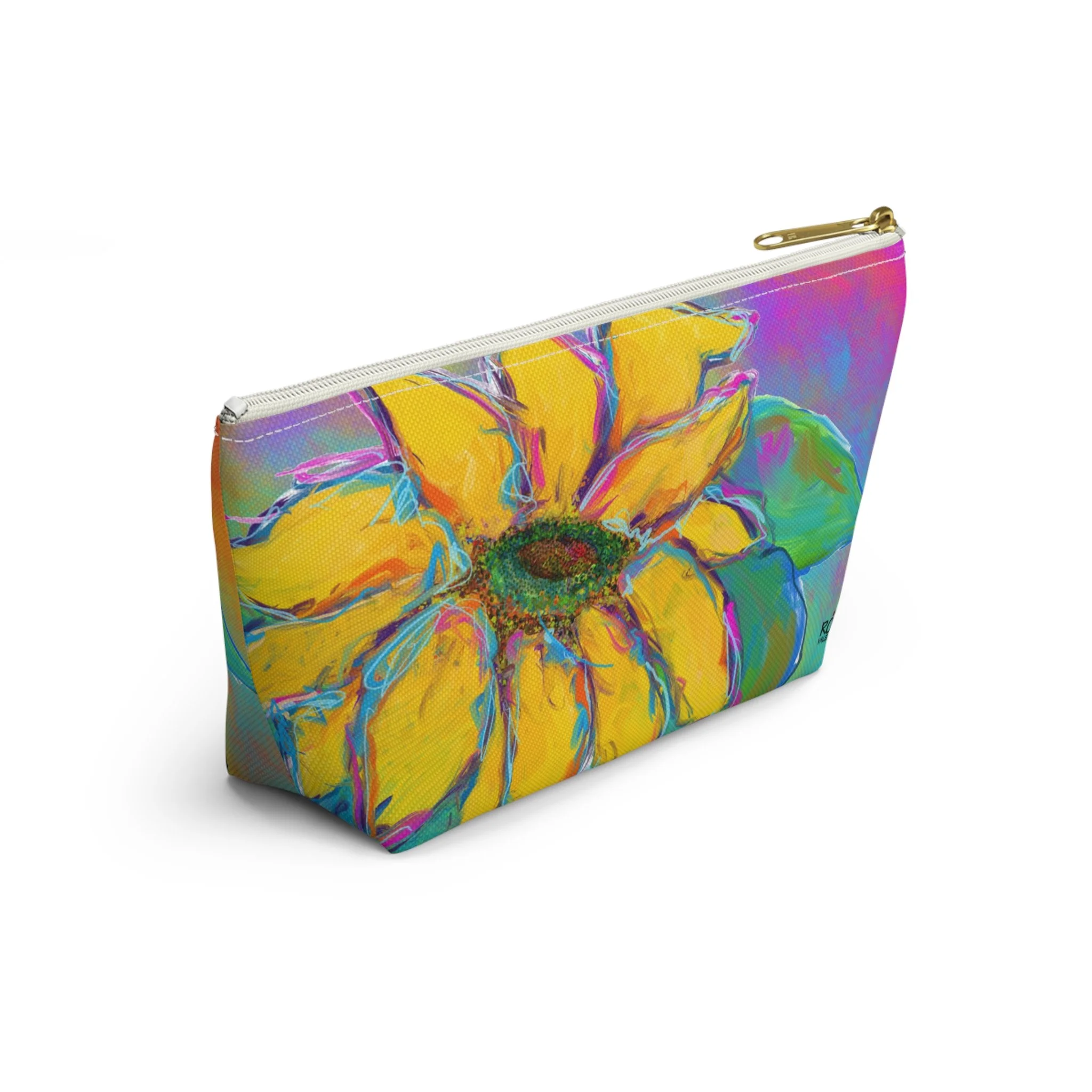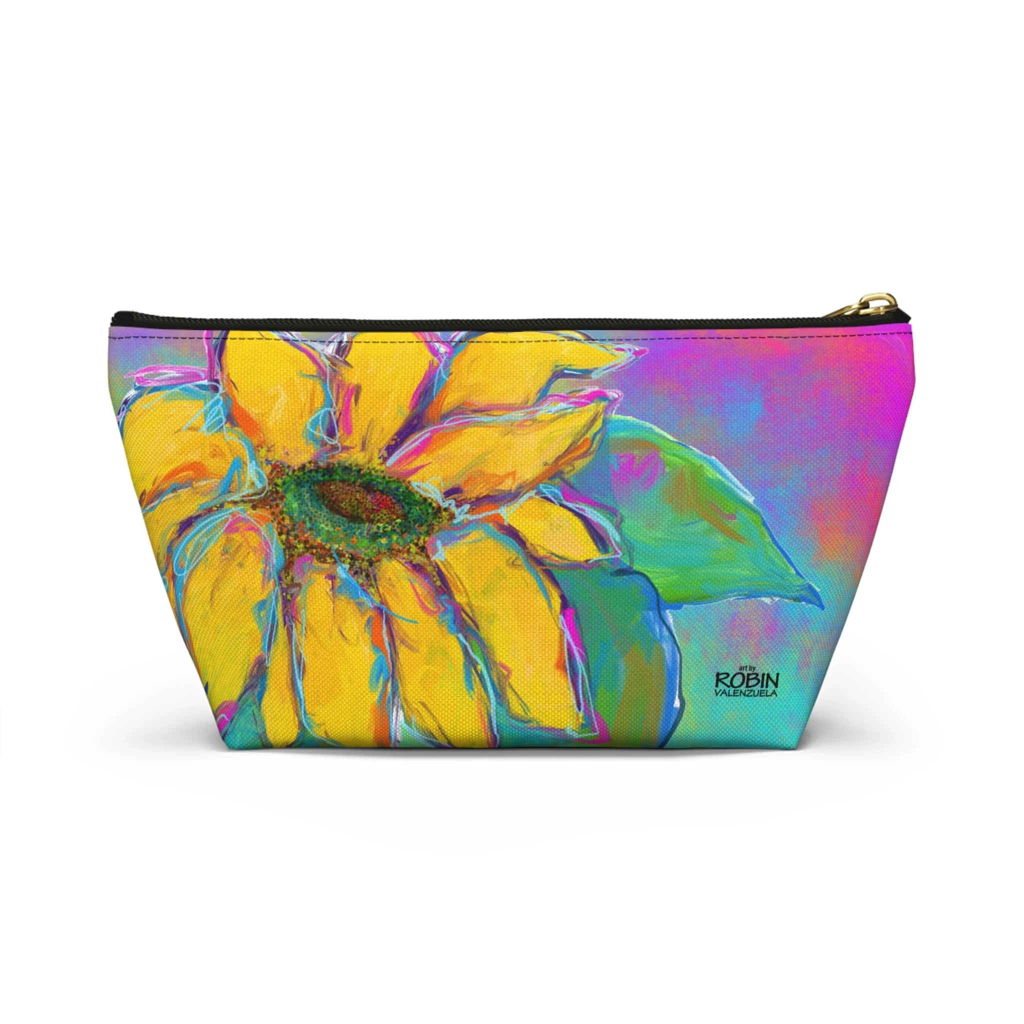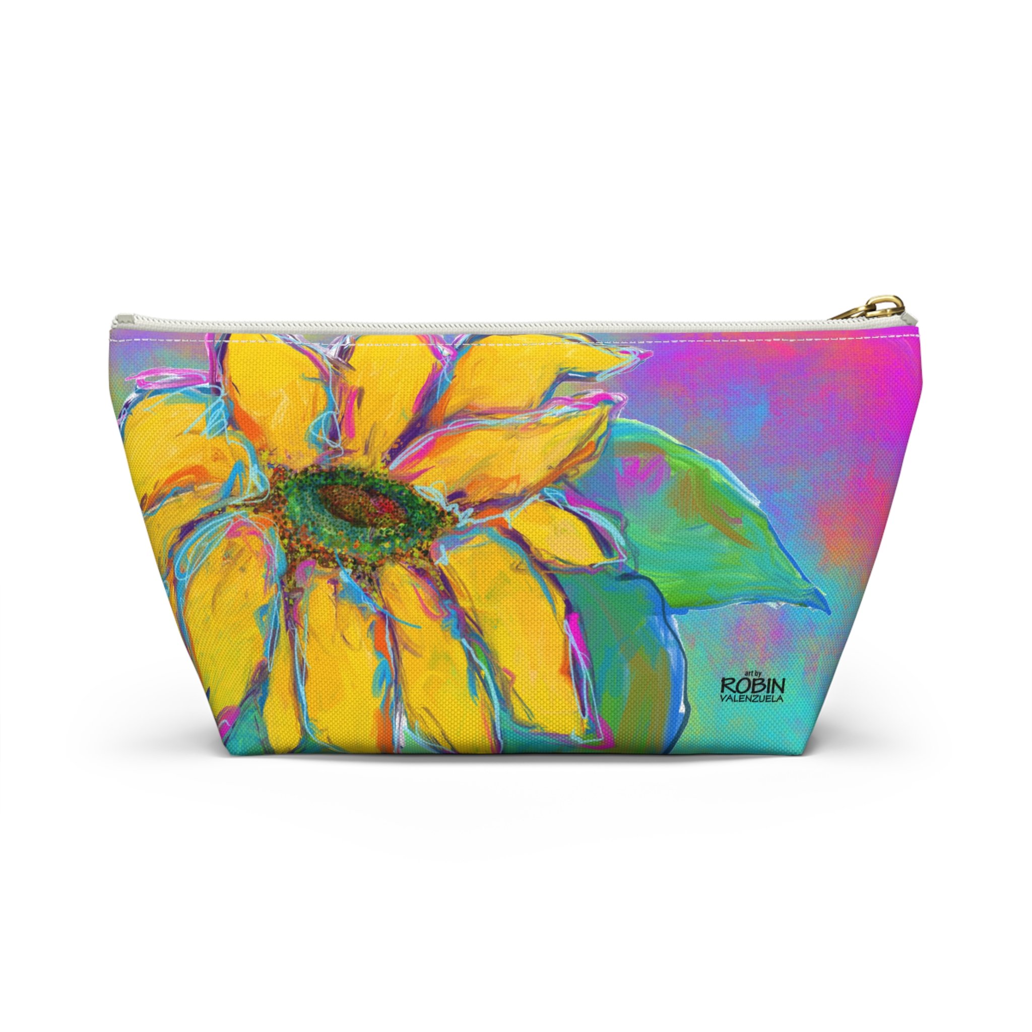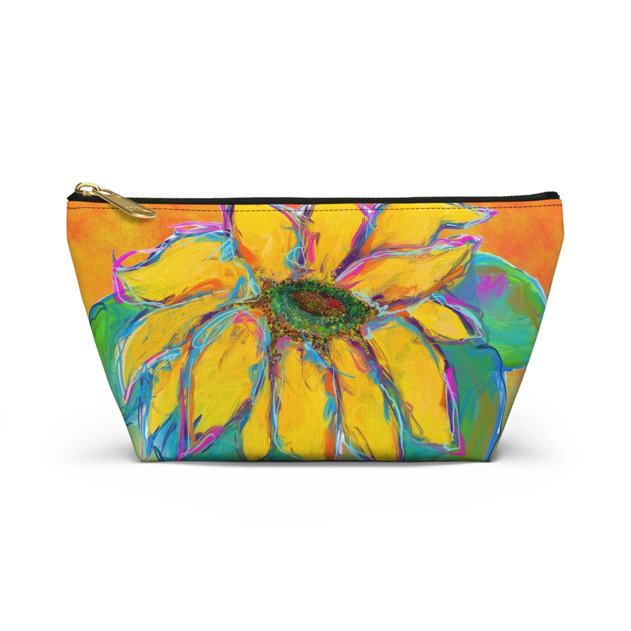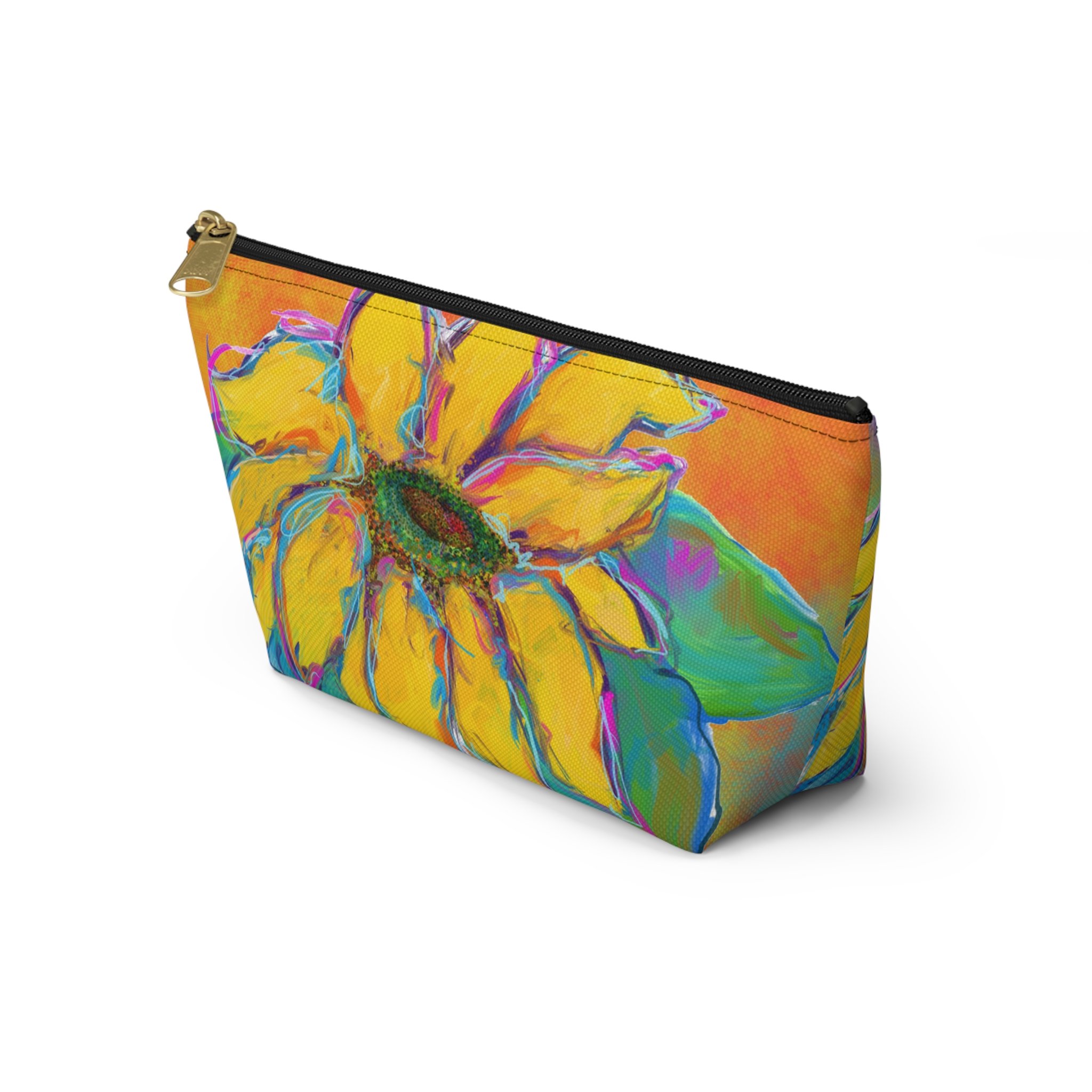 Electric Sunflower Pop Accessory Pouch — Colorful Floral Makeup Bag with T‑Bottom